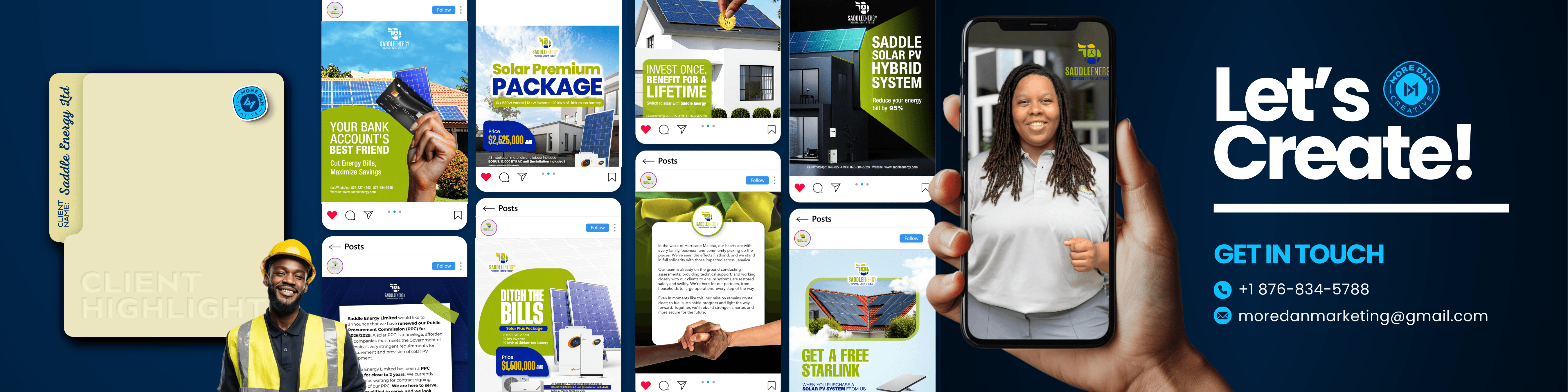 Saddle Energy is a Jamaican solar energy company helping homeowners and businesses cut their electricity bills and move toward renewable power. When More Dan Creative came on board, Saddle Energy's social media presence consisted entirely of static graphics. The content looked decent, but it wasn't doing enough to build trust in a high-consideration industry where customers need to feel confident before spending money on a solar installation.
